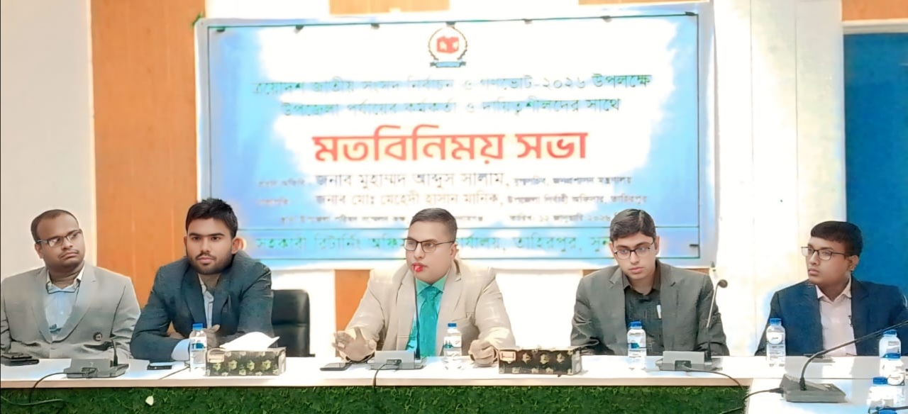 তাহিরপুর (সুনামগঞ্জ) প্রতিনিধি: আগামী ত্রয়োদশ জাতীয় সংসদ নির্বাচন ও গণভোট-২০২৬ অবাধ, সুষ্ঠু ও সফলভাবে সম্পন্ন করার লক্ষ্যে সুনামগঞ্জের তাহিরপুরে উপজেলা পর্যায়ের কর্মকর্তা ও দায়িত্বশীলদের সাথে এক গুরুত্বপূর্ণ মতবিনিময় সভা অনুষ্ঠিত হয়েছে।