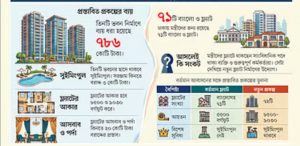 একজন সাধারণ কর্মচারীর বাসার (৬৫০ বর্গফুট) তুলনায় মন্ত্রীদের এই ফ্ল্যাটগুলো প্রায় ১৪ গুণ বড়। |