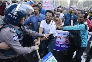 আন্দোলনকারীরা পুলিশের বাধা উপেক্ষা করে সামনের দিকে এগিয়ে যাওয়ার চেষ্টা করলে পুলিশ তাঁদের ছত্রভঙ্গ করতে কঠোর অবস্থানে যায়।