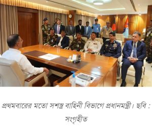 সকাল ৯টায় প্রধানমন্ত্রী তার কার্যালয়ে পৌঁছালে এক প্রাণবন্ত পরিবেশের সৃষ্টি হয়। তাকে স্বাগত জানান তিন বাহিনীর প্রধানগণ। প্রধানমন্ত্রী তাদের সাথে কুশল বিনিময় করেন এবং সশস্ত্র বাহিনীর কার্যক্রম নিয়ে সংক্ষিপ্ত আলোচনা করেন।