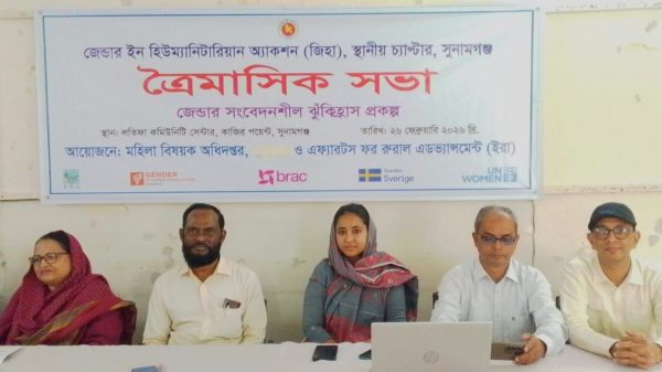 সুনামগঞ্জে জেন্ডার সংবেদনশীল দুর্যোগ ঝুঁকিহ্রাস বিষয়ক ‘জিহা’ চ্যাপ্টারের সভা অনুষ্ঠিত